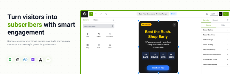 No clunky add-ons, no style mismatches, just seamless harmony between your design vision and conversion goals. Build and launch campaigns directly within your existing page builder environment, ensuring perfect alignment across your entire website.